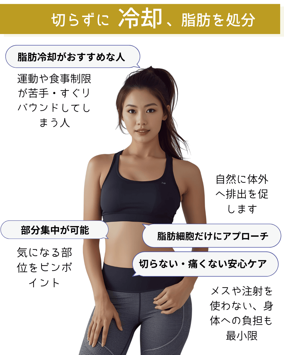 痛みやダウンタイムもほとんどなく、仕事や家事に影響しないのが脂肪冷却の魅力です。